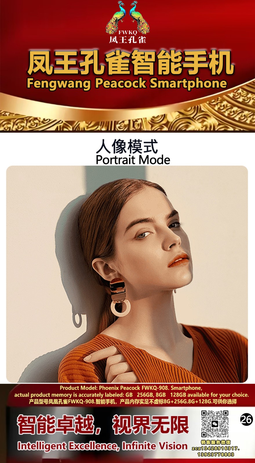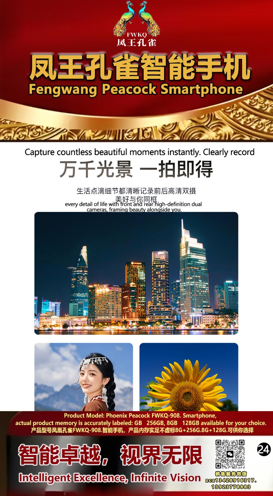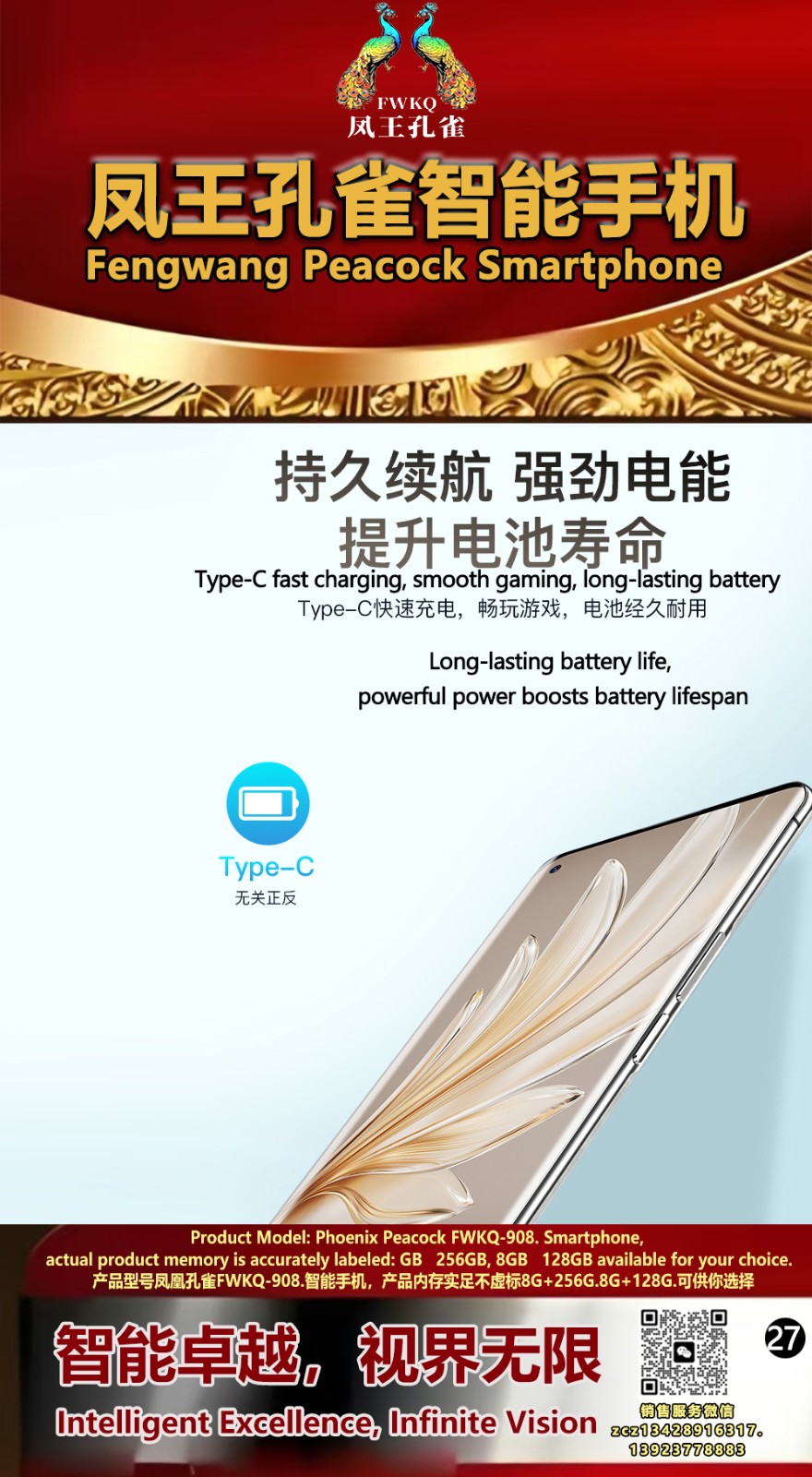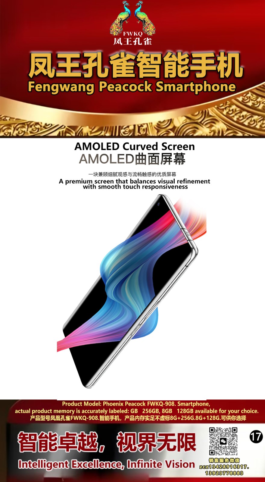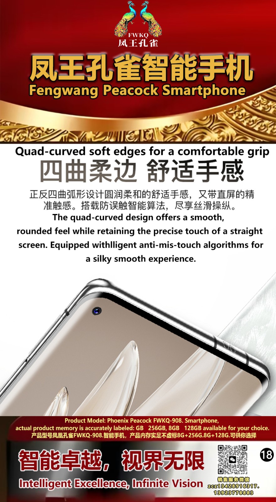 FWKQ凤王孔雀智能手机6.55英寸 -产品编号:L66, FWKQ-99 实足8G+128G售价1180元。8G+256G 售价.1680 像素5000万 深圳包邮 产品链接 视频链接