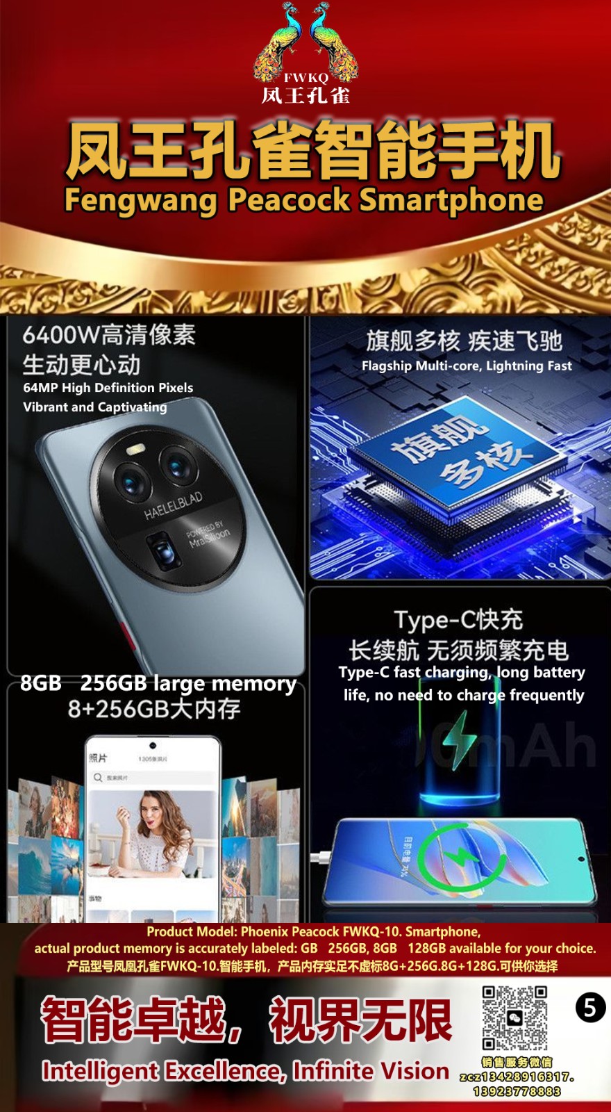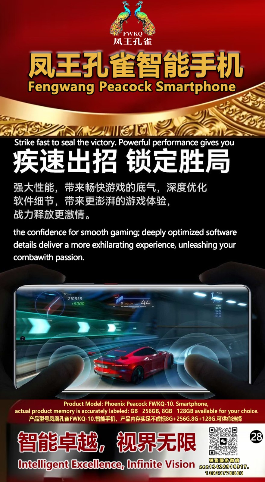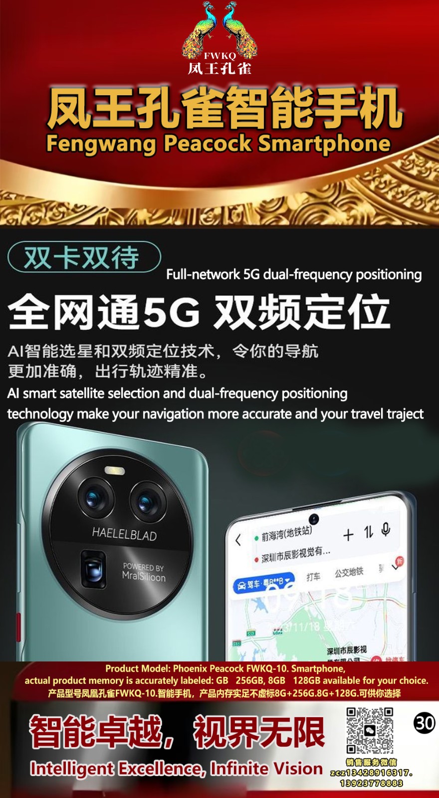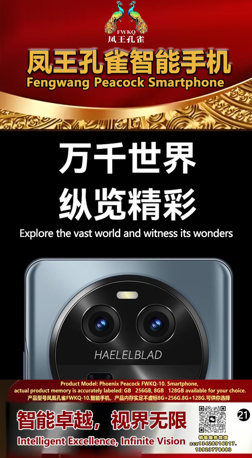 FWKQ凤王孔雀智能手机 产品编号:L10, 6.8”OLED双曲屏8+256G全网通,6400W高清像素,售价.1680 深圳包邮 产品链接 视频链接