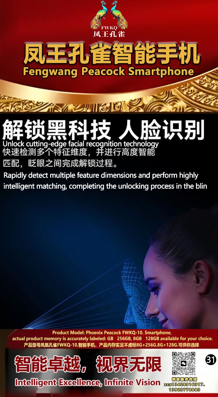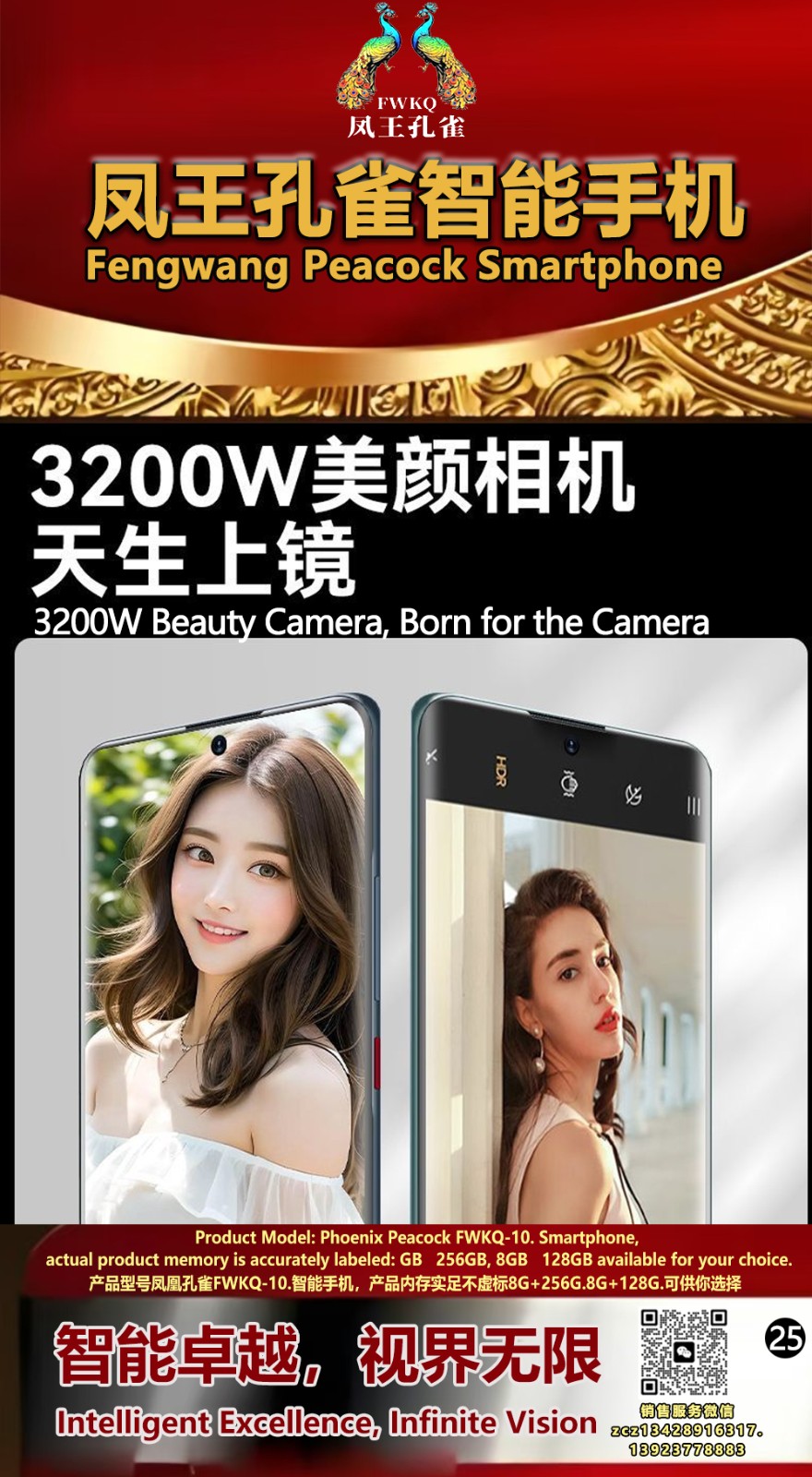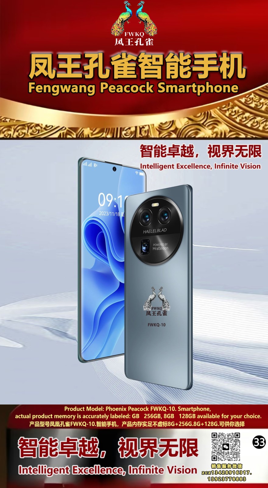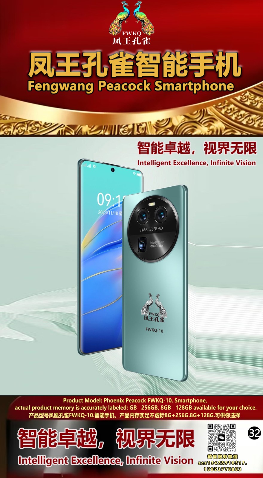 FWKQ凤王孔雀智能手机 产品编号:L10, 6.8”OLED双曲屏8+256G全网通,6400W高清像素,售价.1680 深圳包邮 产品链接 视频链接
