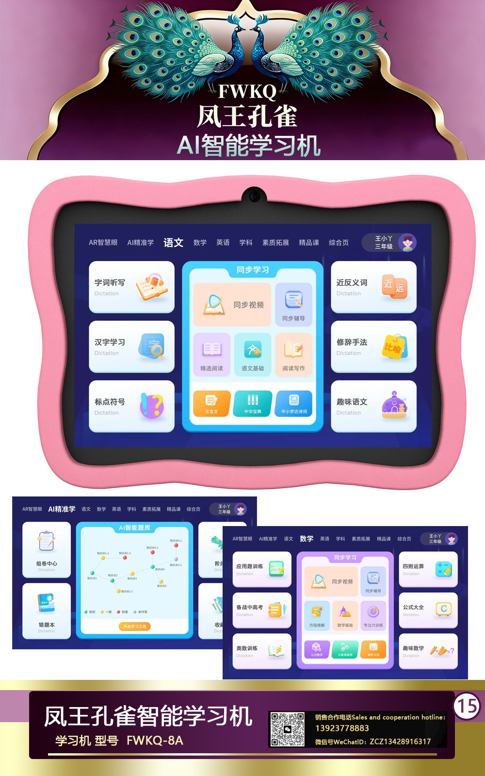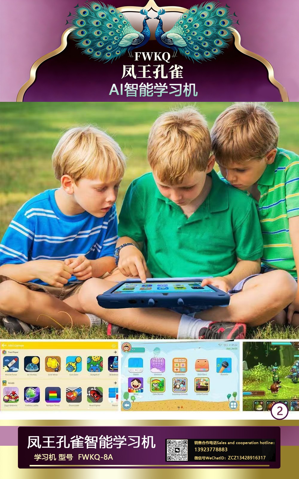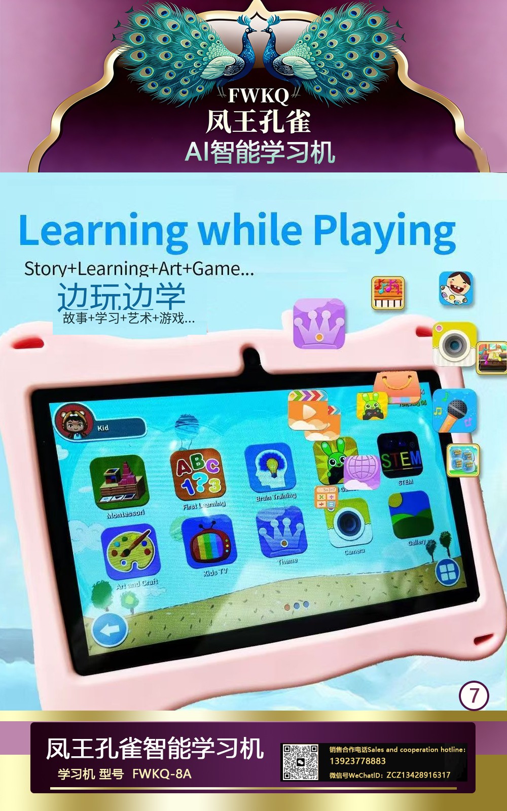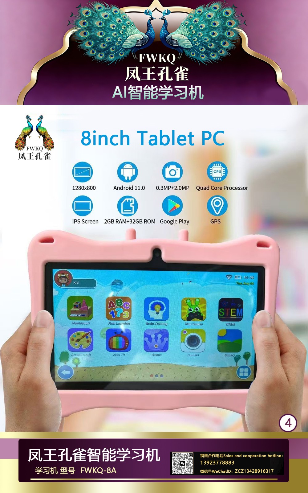 FWKQ凤王孔雀智能电脑学习机 产品编号:L63 , FWKQ-8A 实足3+32Gp30A ,8英寸大屏 ,售价.: 深圳包邮 产品链接 视频链接