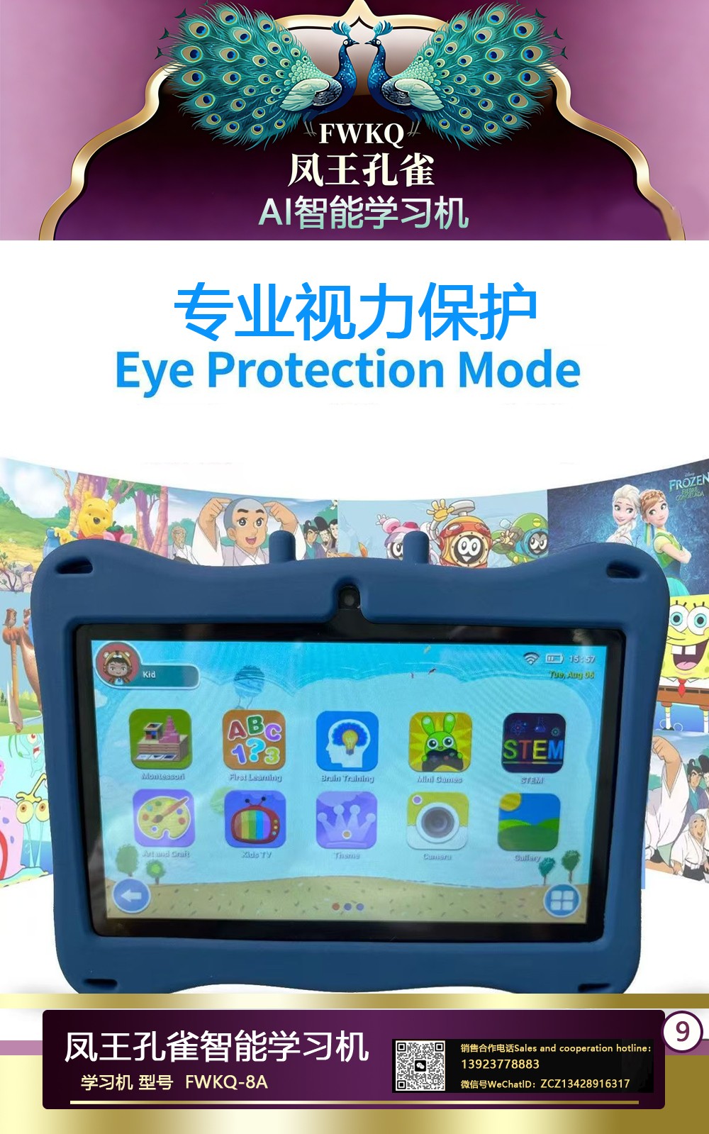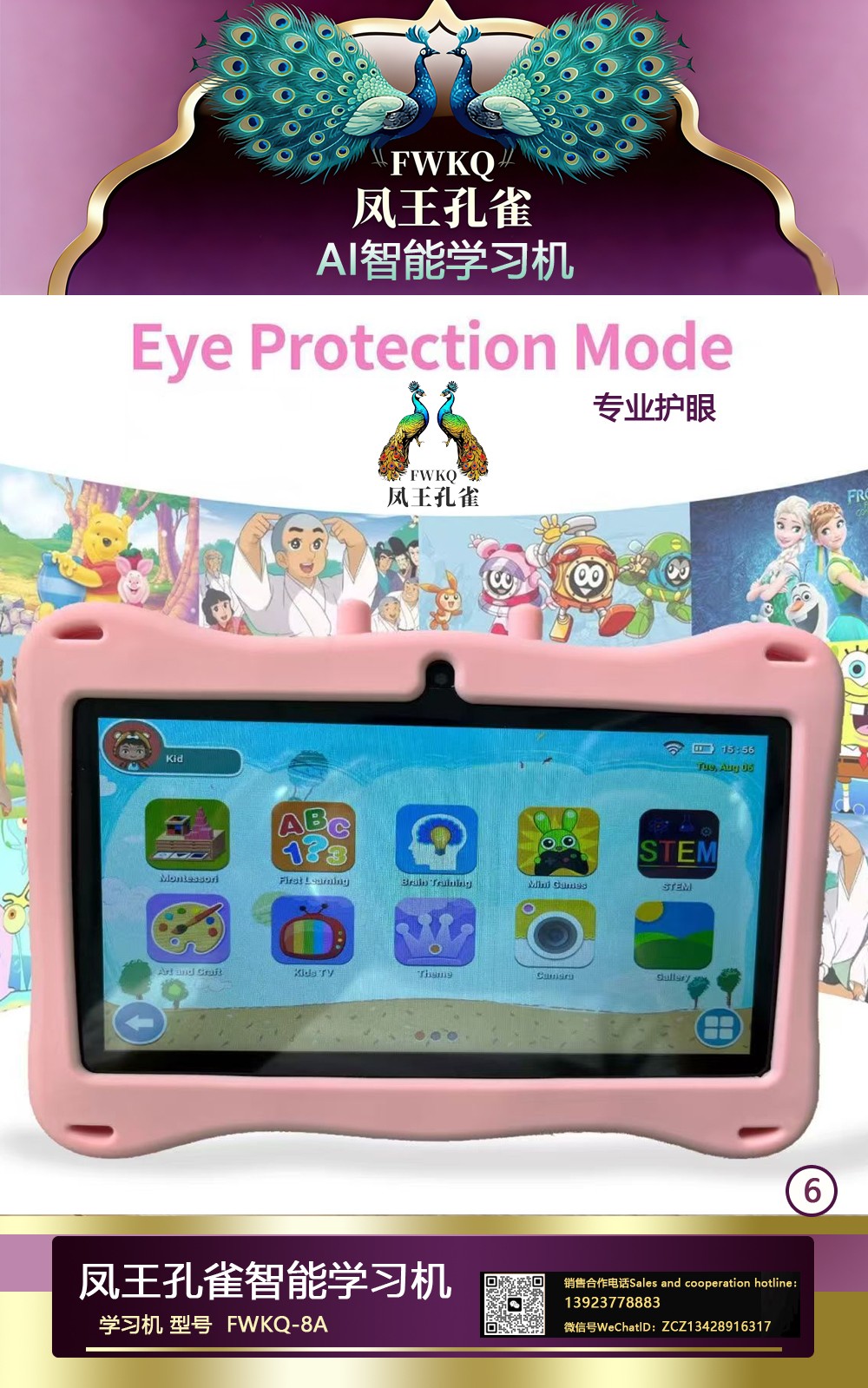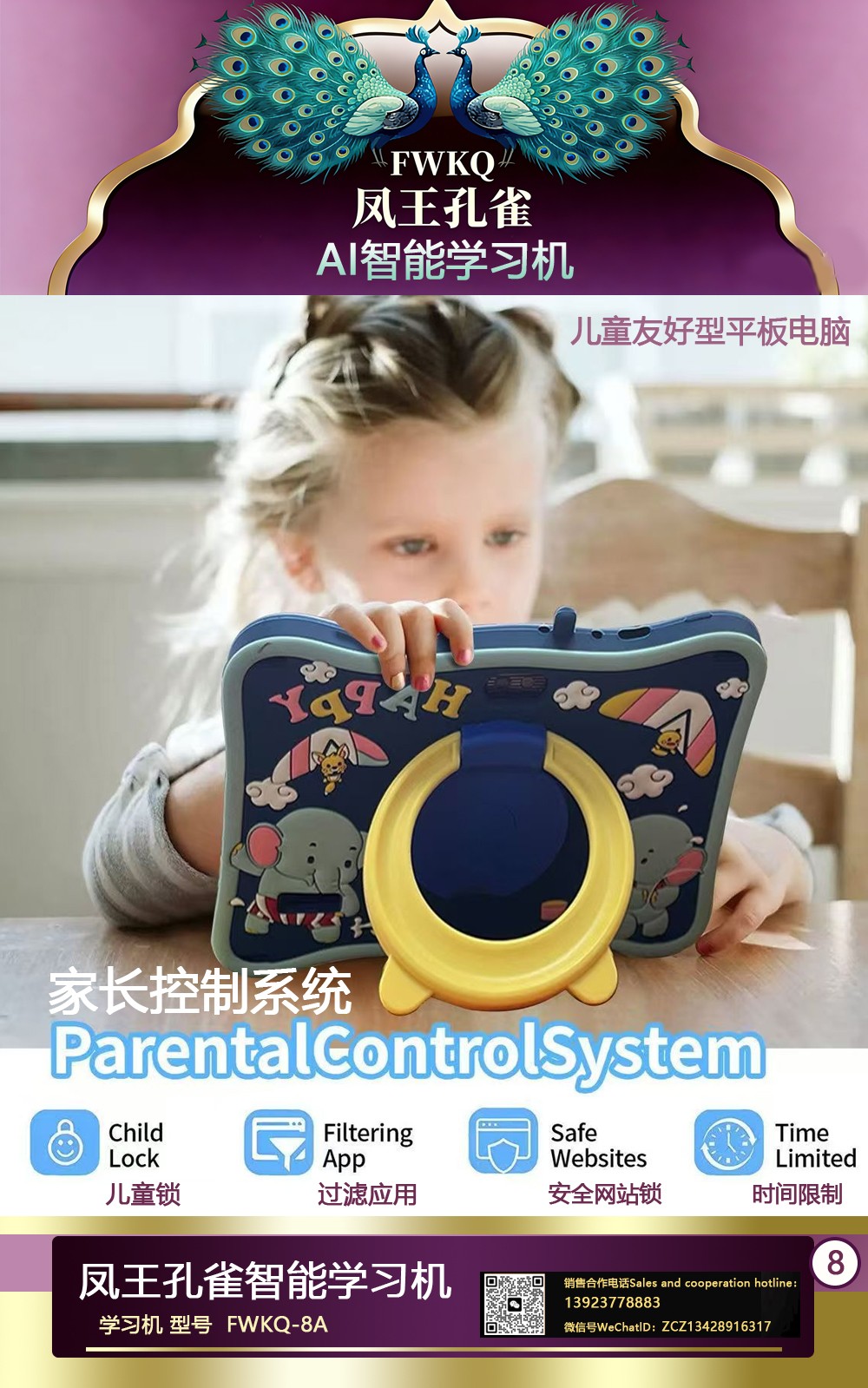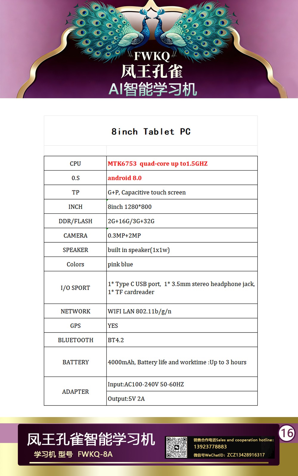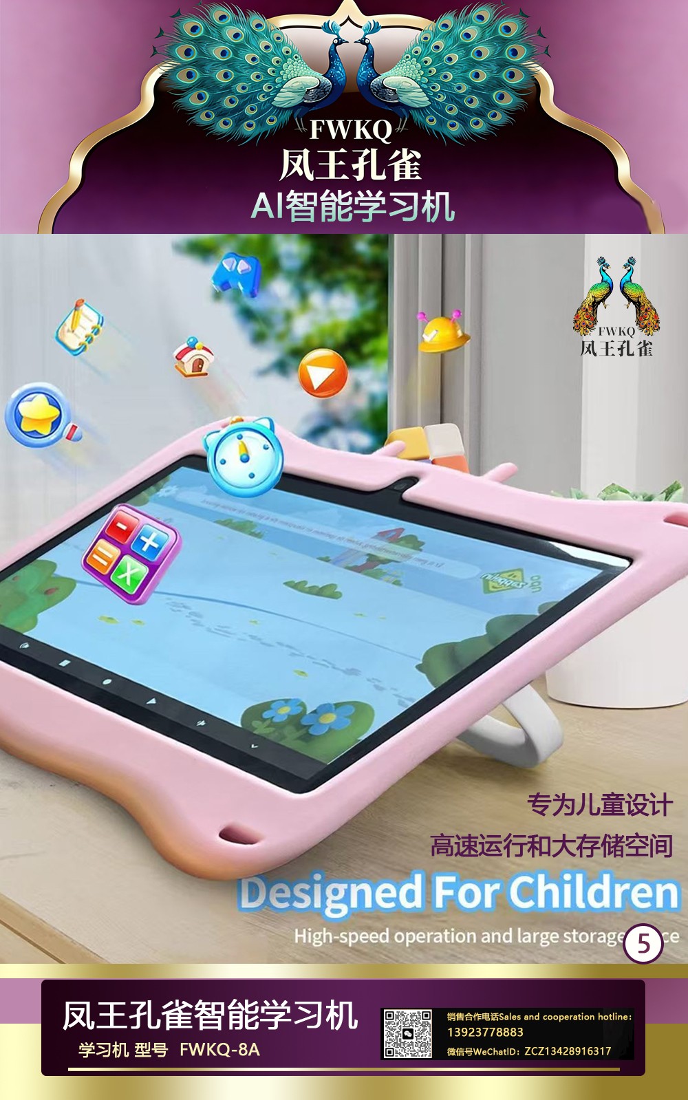 FWKQ凤王孔雀智能电脑学习机 产品编号:L63 , FWKQ-8A 实足3+32Gp30A ,8英寸大屏 ,售价.: 深圳包邮 产品链接 视频链接