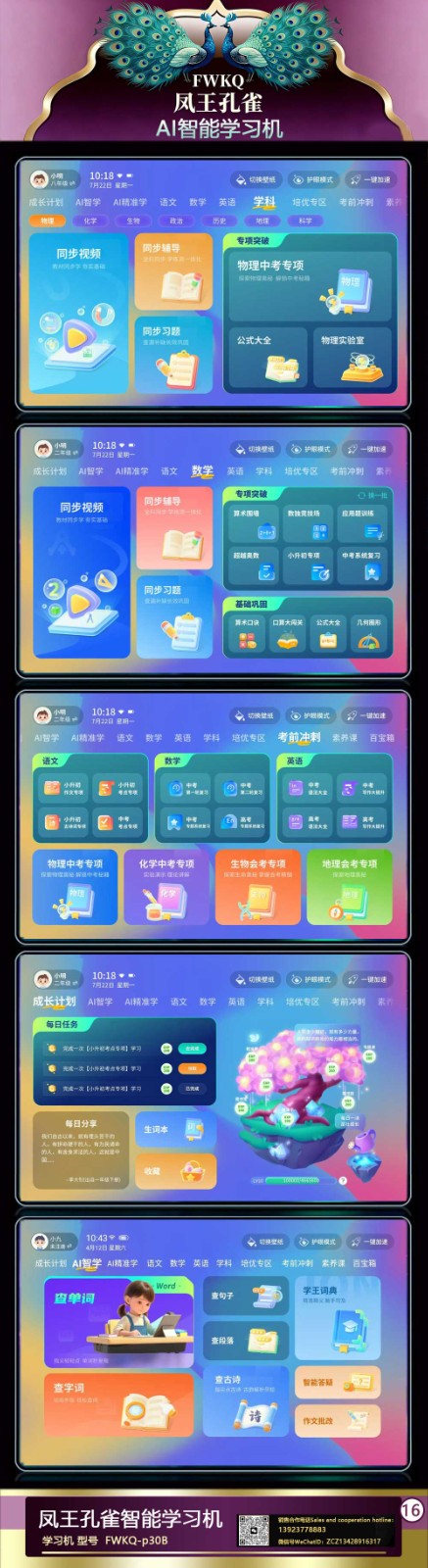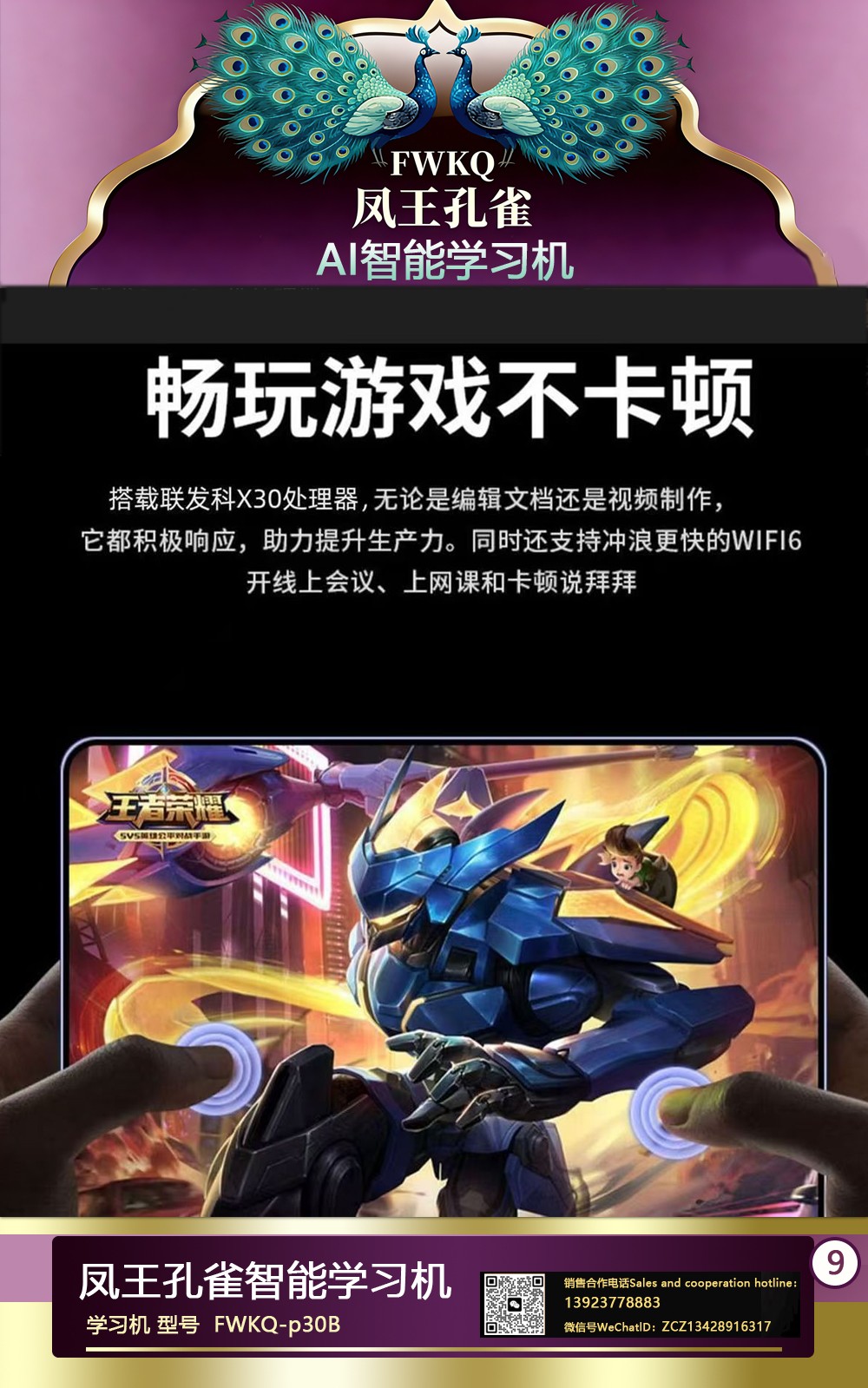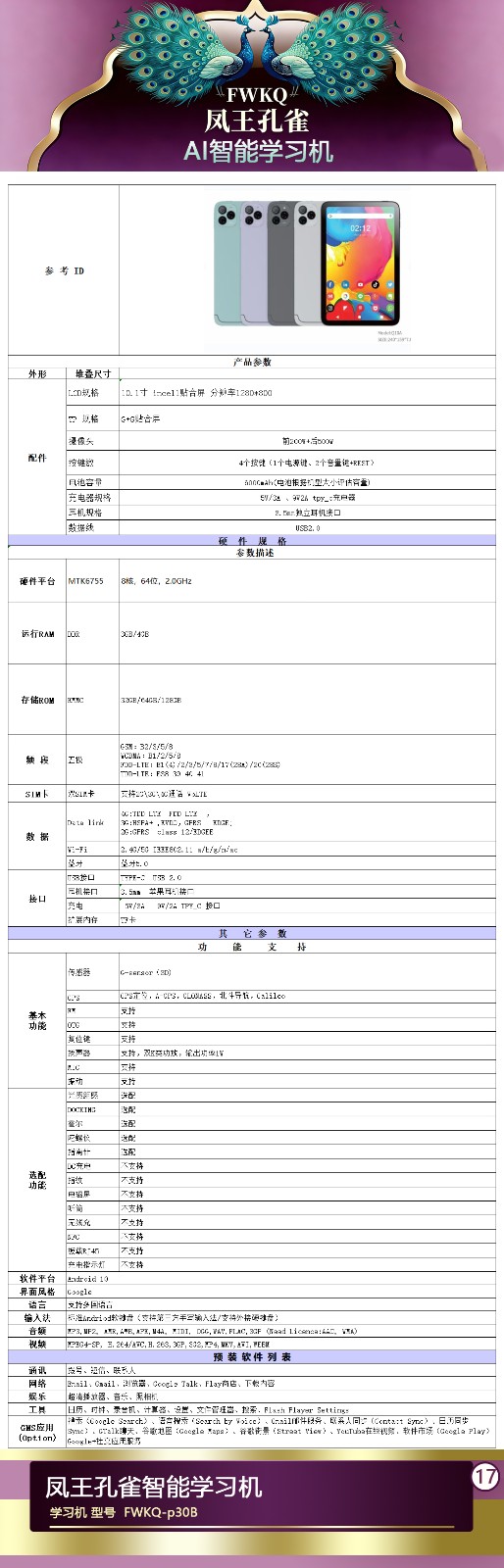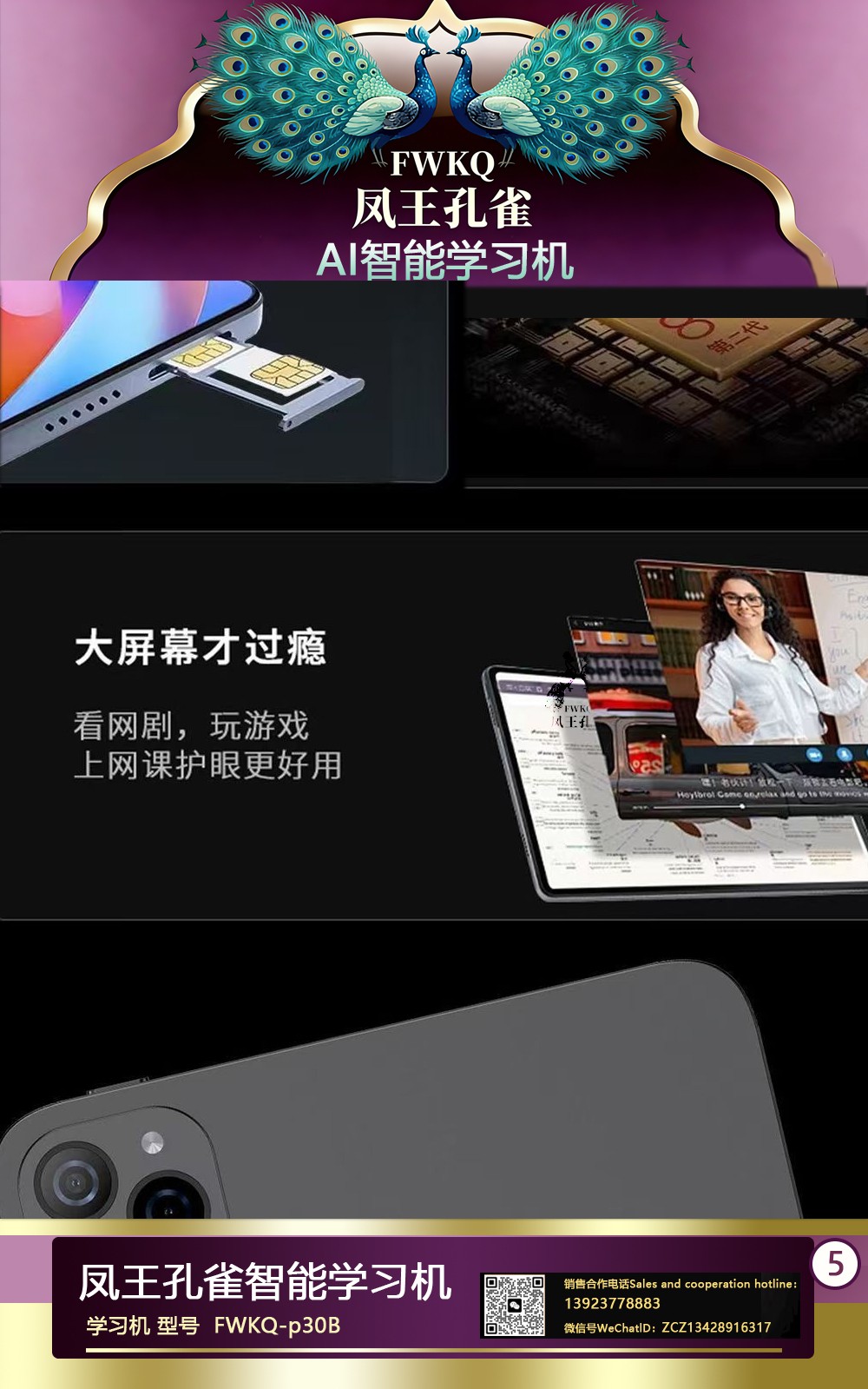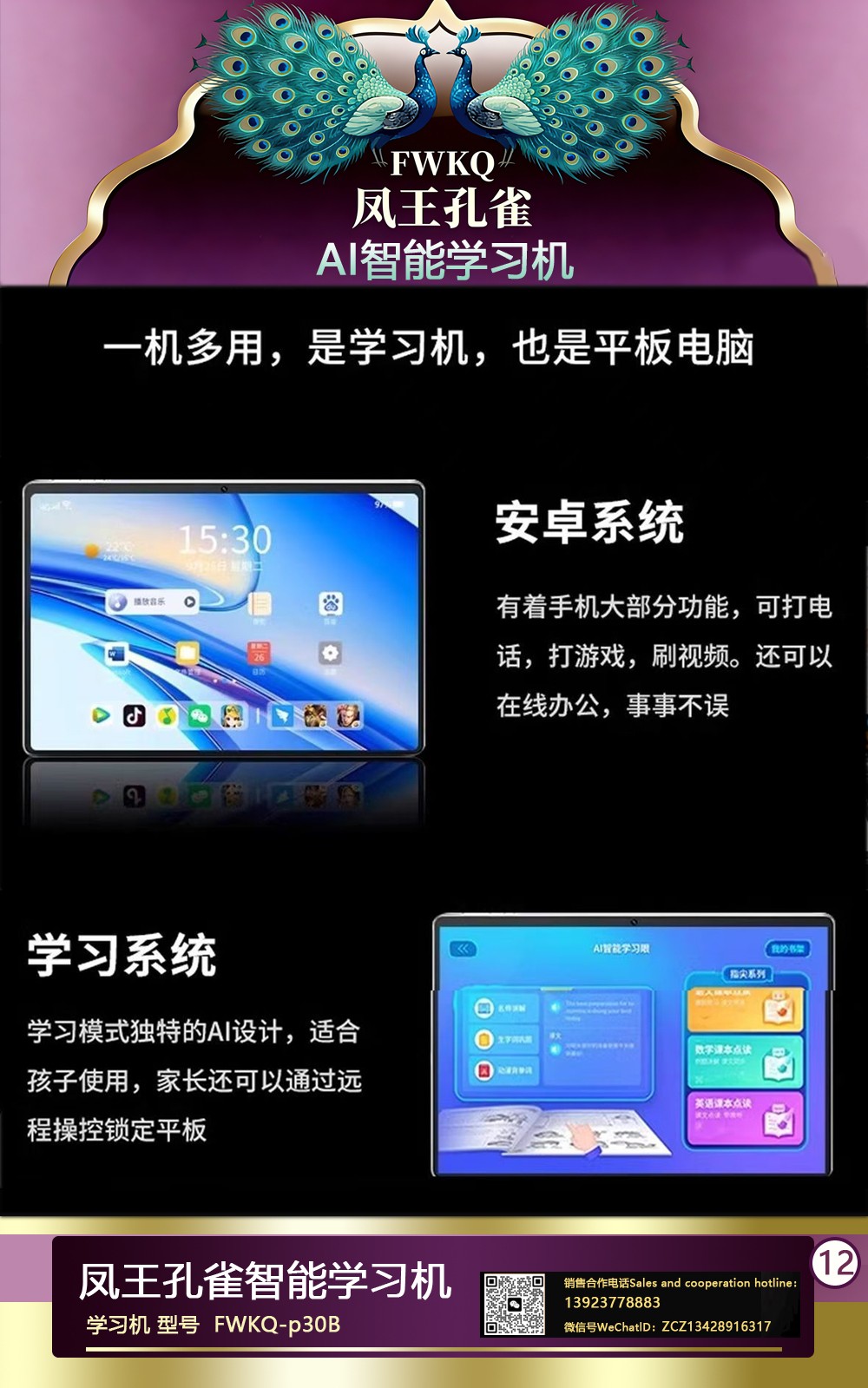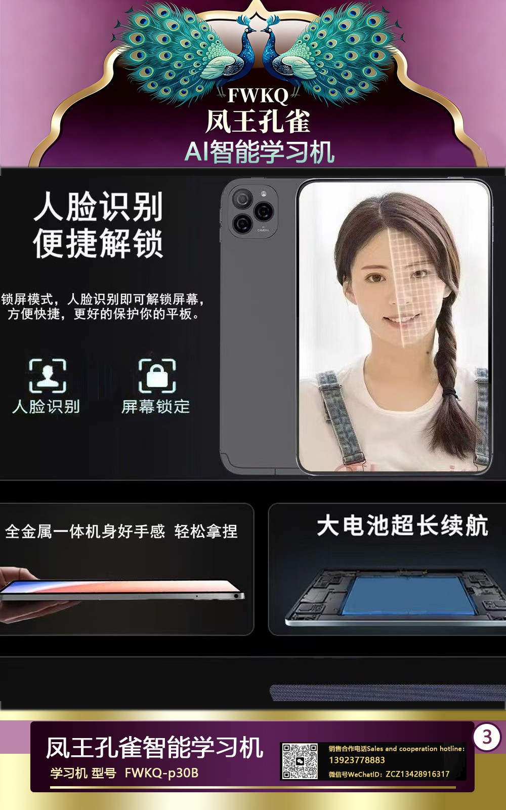 FWKQ凤王孔雀智能电脑学习机 产品编号:L63 ,FWKQ-p30B 实足3+32Gp30 ,10英寸大屏 ,售价.: 深圳包邮