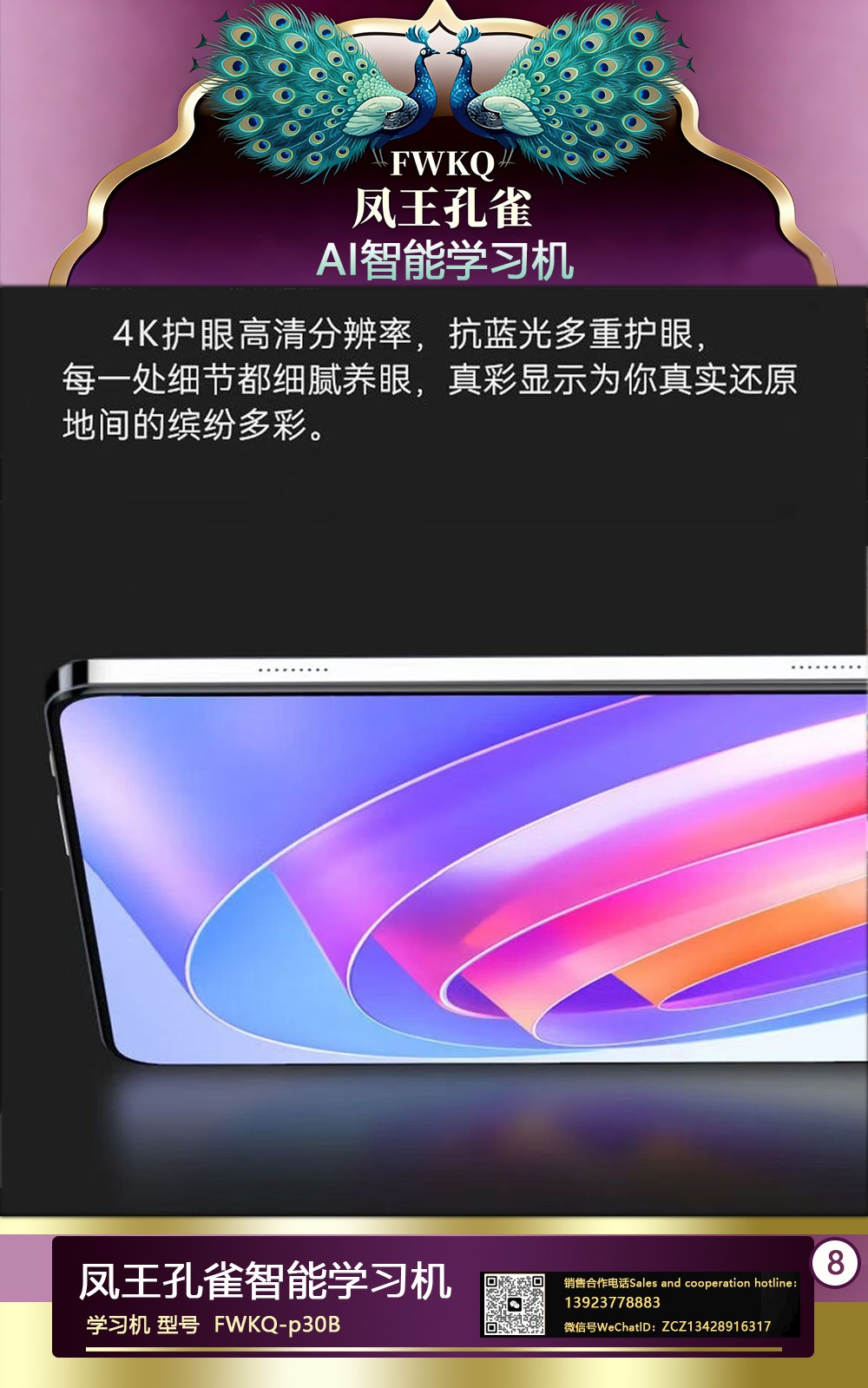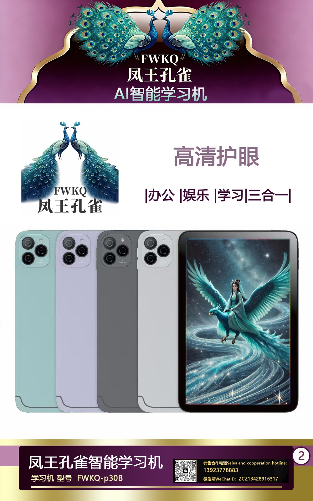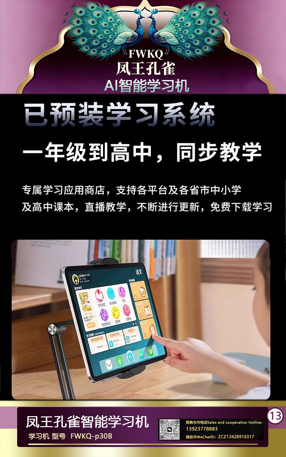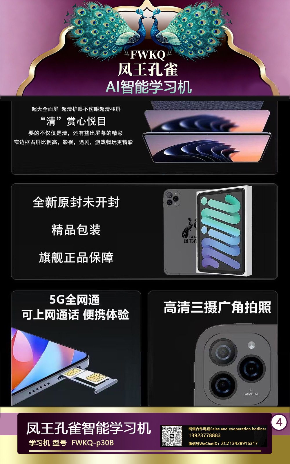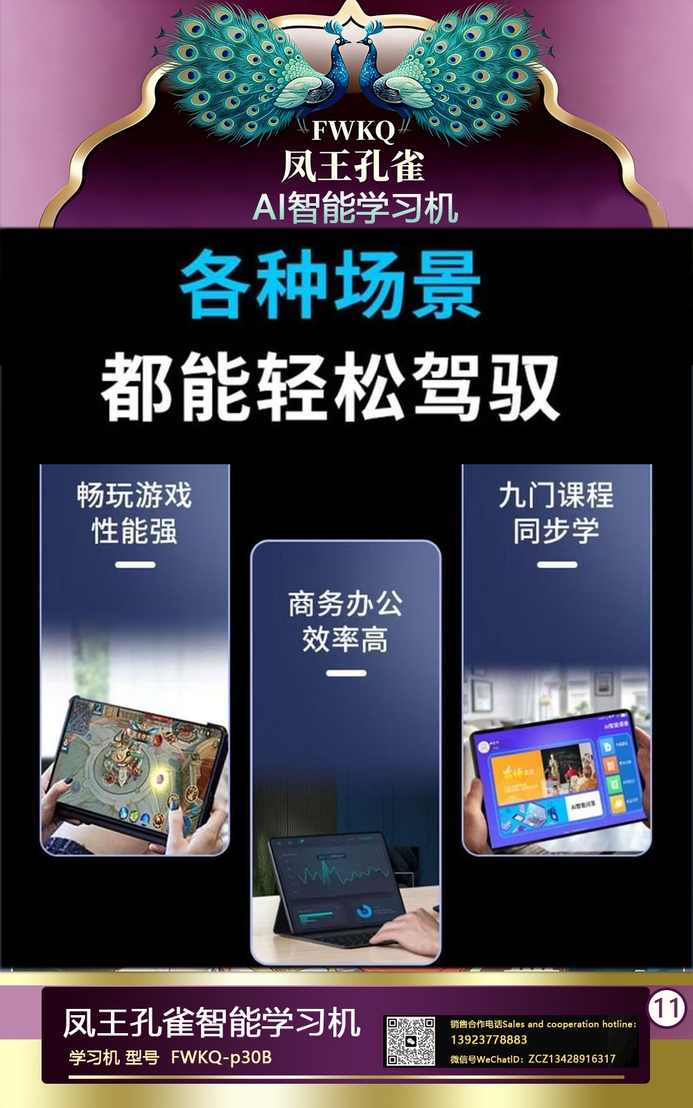FWKQ凤王孔雀智能电脑学习机 产品编号:L63 ,FWKQ-p30B 实足3+32Gp30 ,10英寸大屏 ,售价.: 深圳包邮