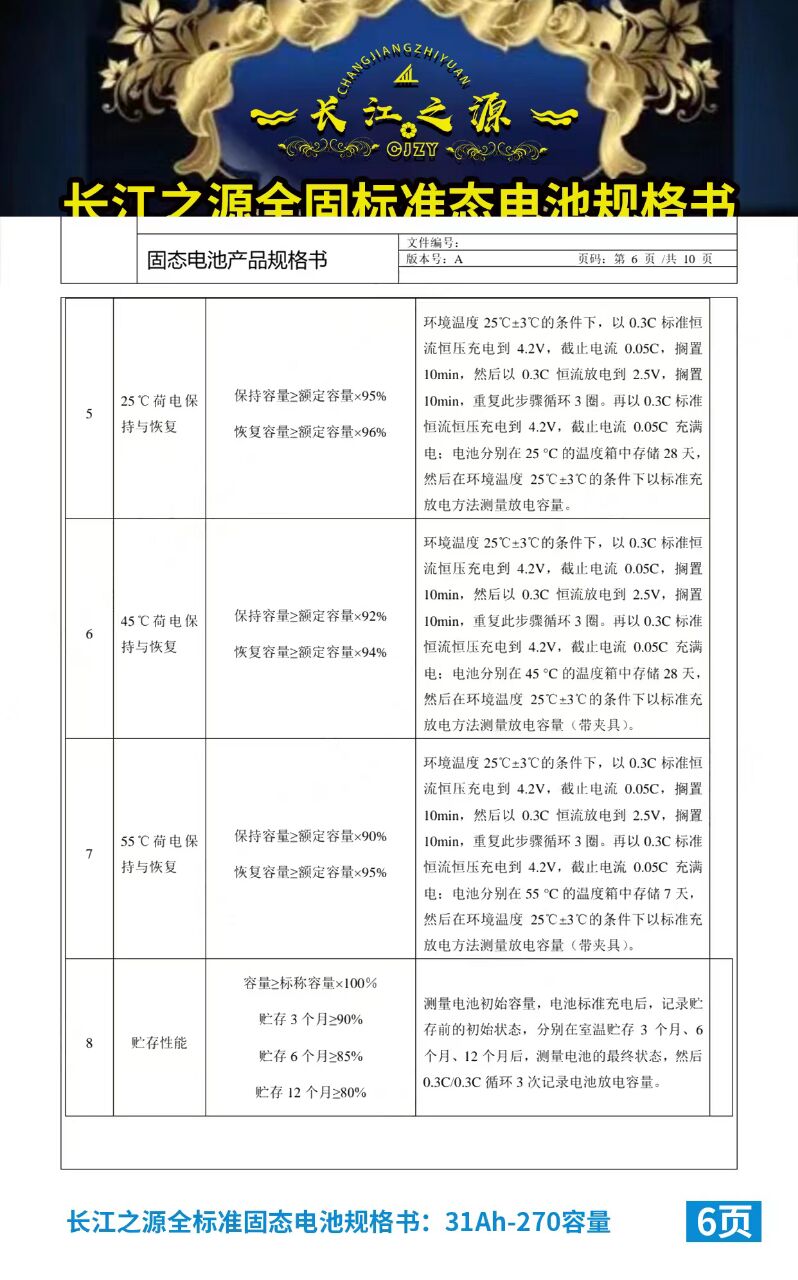 长江之源全固标准态电池规格书,产品编号K178售价:元/个,深圳市包邮