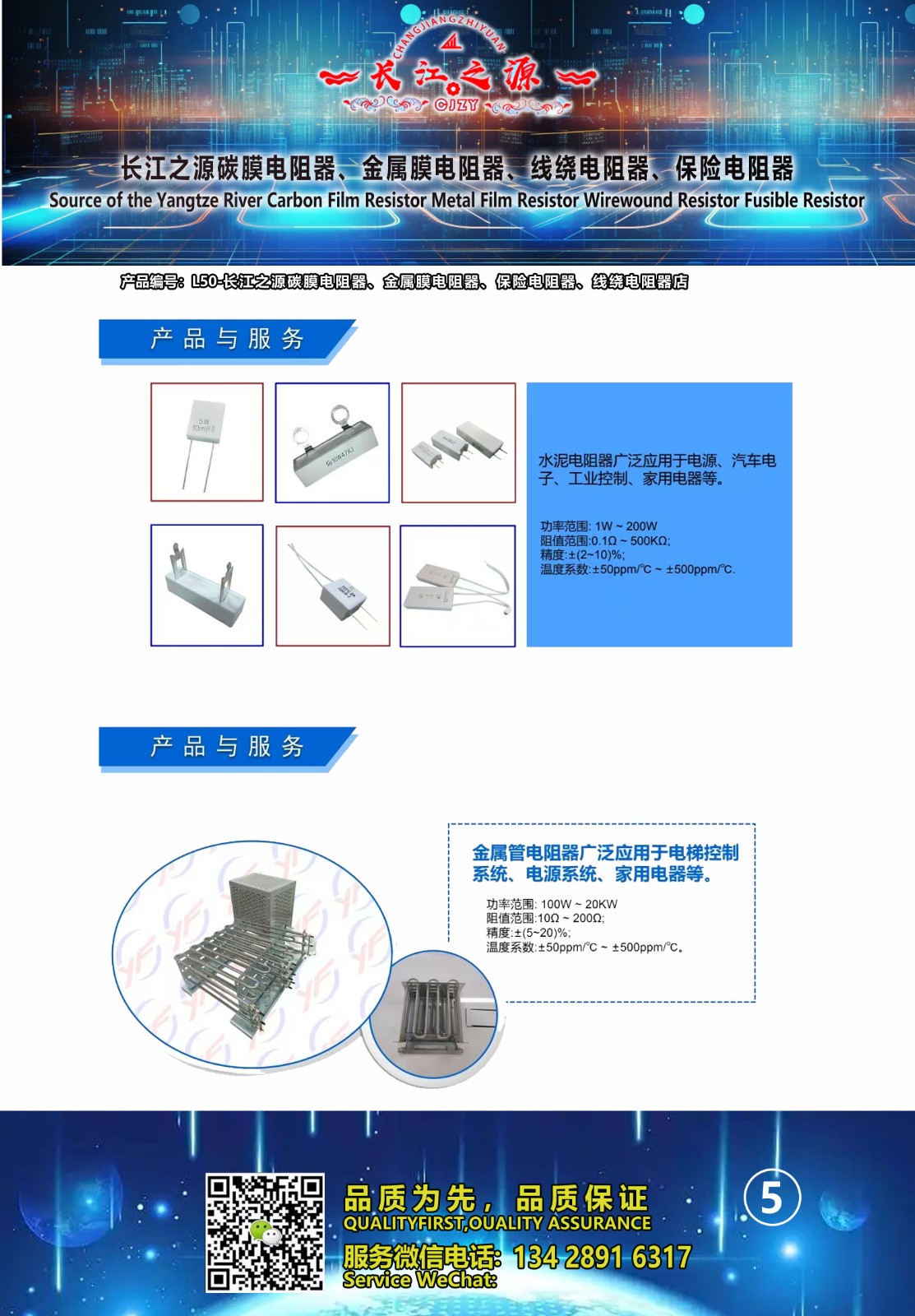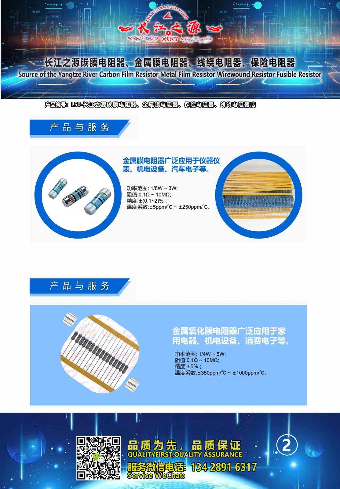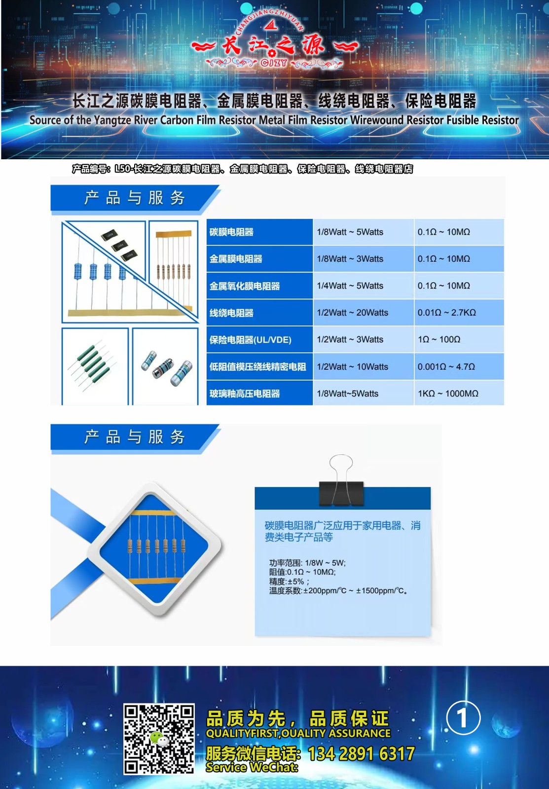 长江之源碳膜电阻器、金属膜电阻器、线绕电阻器、保险电阻器 产品编号L50,品质有保障,售价: 深圳市包邮