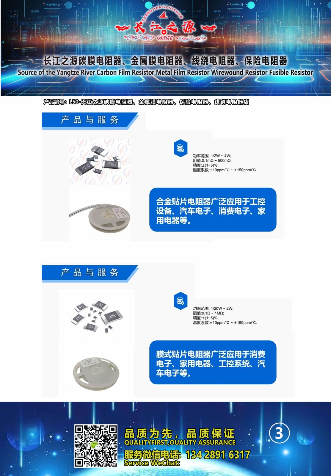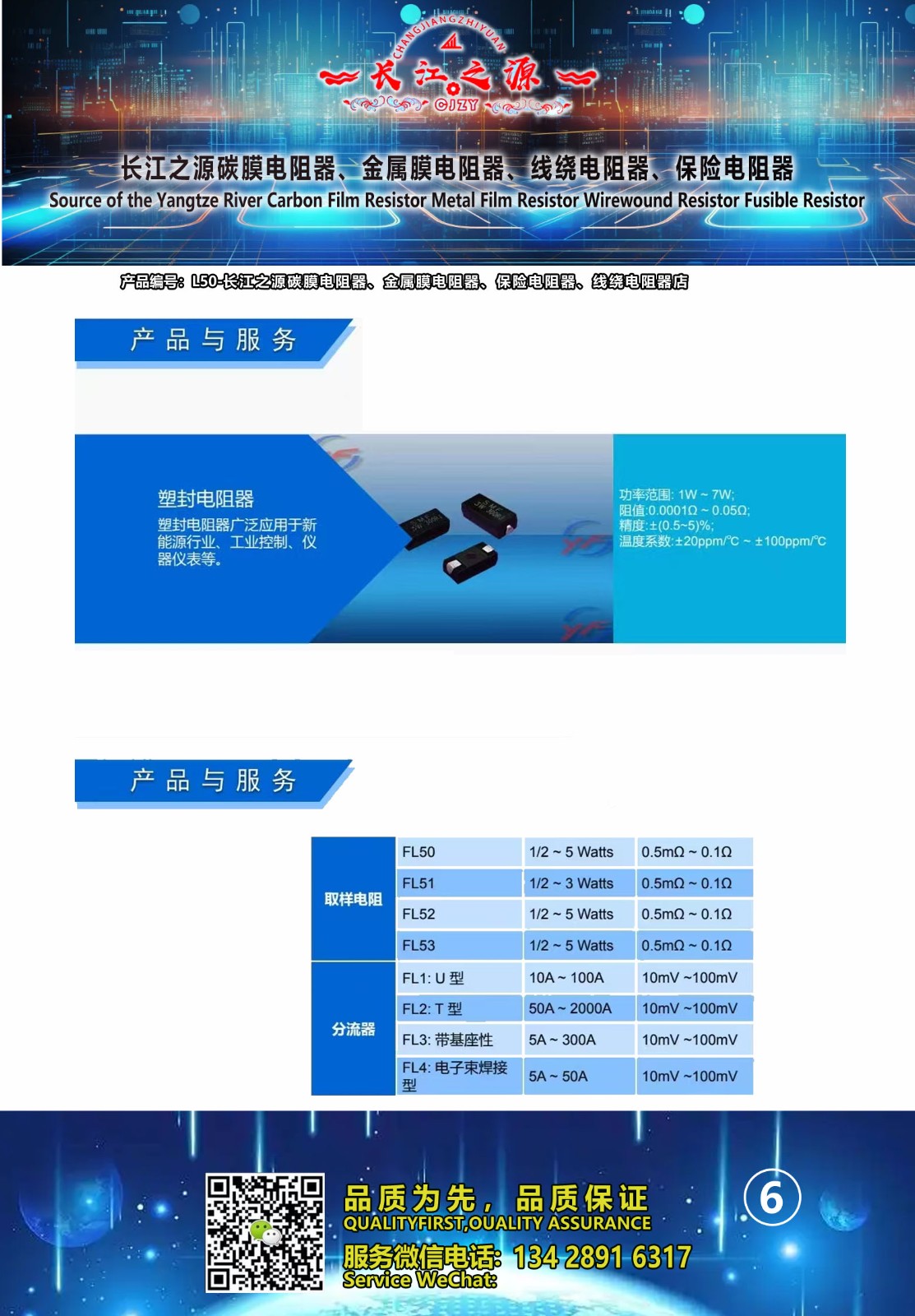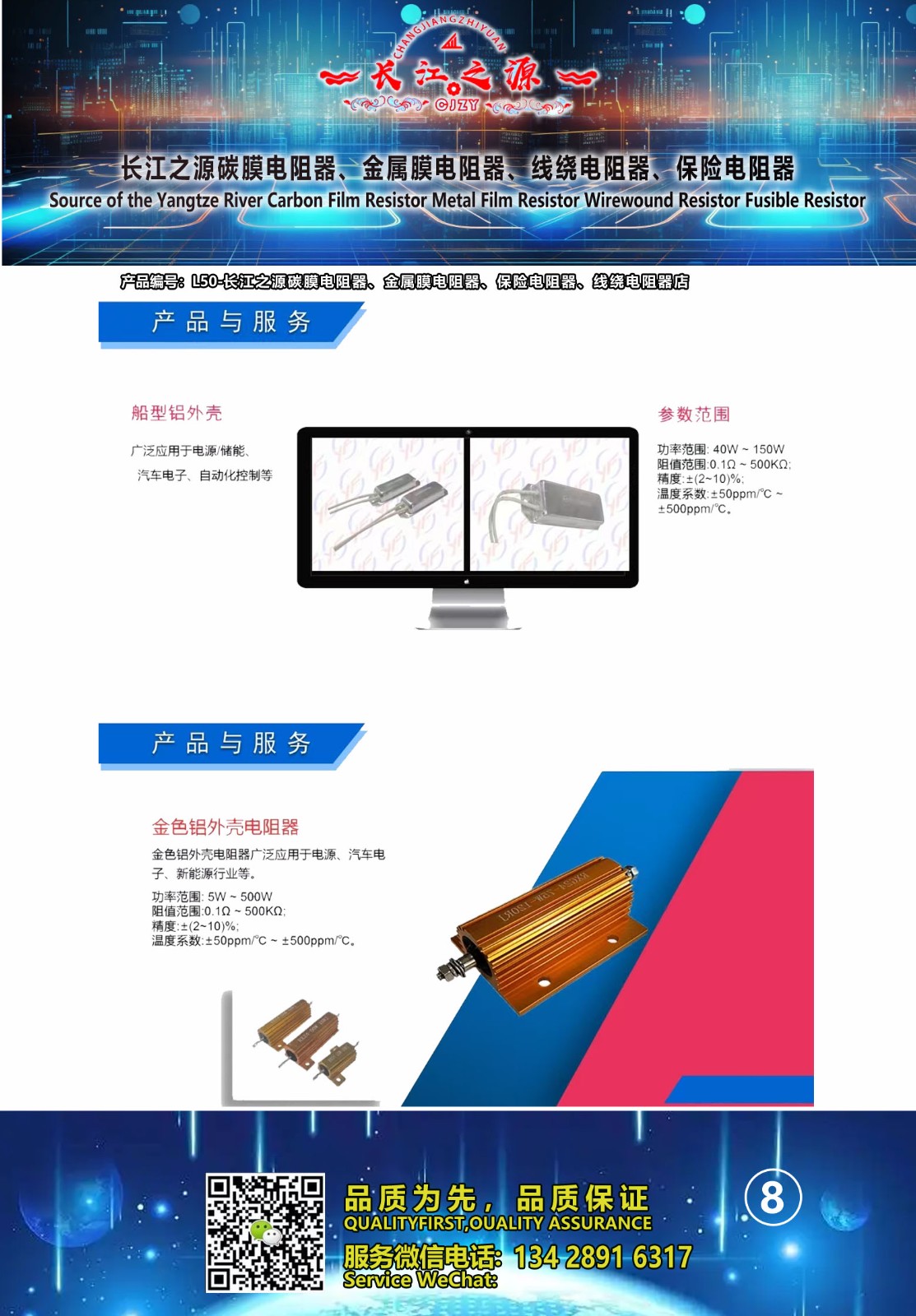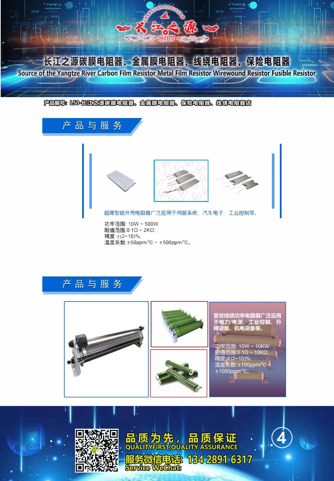 长江之源碳膜电阻器、金属膜电阻器、线绕电阻器、保险电阻器 产品编号L50,品质有保障,售价: 深圳市包邮