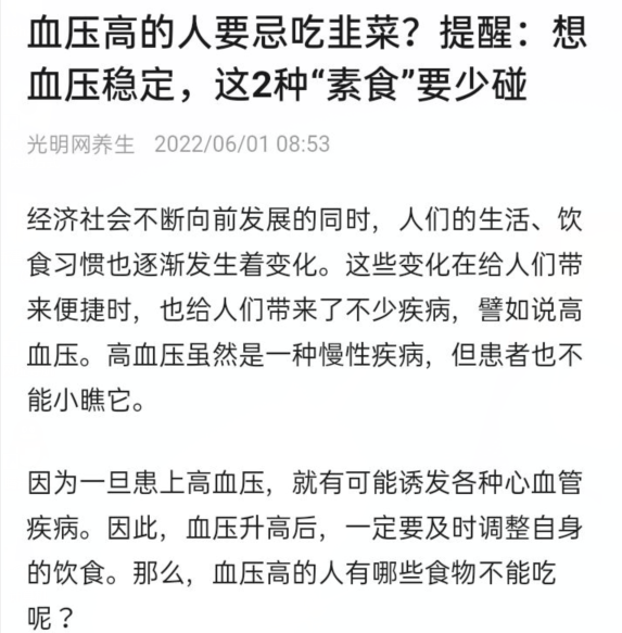 血压高的人要忌吃韭菜?提醒:想血压稳定,这2种素食要少碰