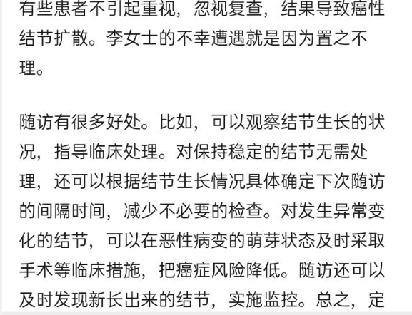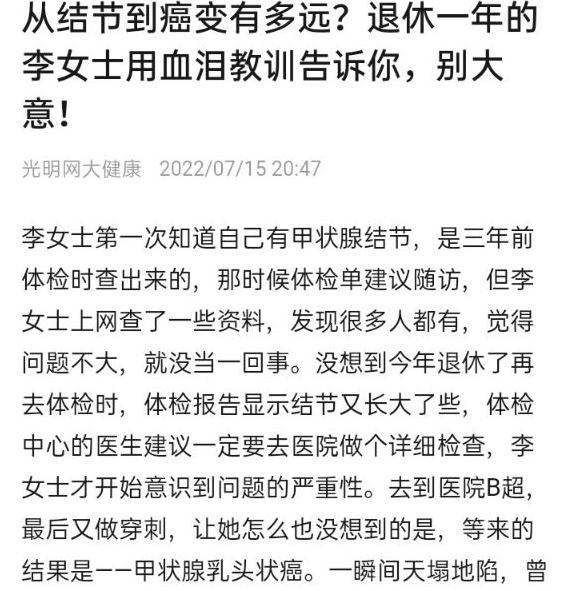从结节到癌变有多远?退休一年的李女士用血泪教训告诉你,别大意